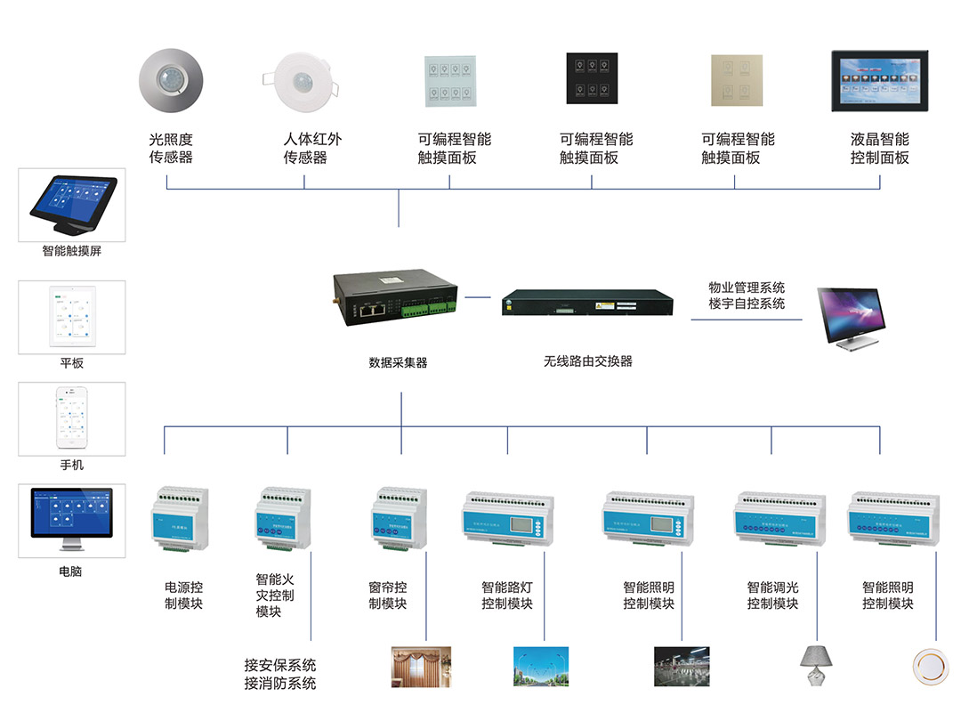 與其他系統(tǒng)聯(lián)動控制,如BA系統(tǒng)、消防系統(tǒng)、安防報警系統(tǒng)、窗簾系統(tǒng)、空調系統(tǒng)等,實現(xiàn)全屋智能化控制。